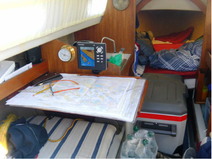 Für die Törnplanung und Navigation stehen uns ganz klassisch, die Kroatische Seekarte, der kroatische Hafen- und Ankerplatz-Atlas und Navigationsbesteck zur Verfügung. Darüber hinaus ein Kartenplotter und am Handy Navionics und diverse Wetter-Apps.
