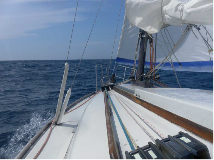 Ich habe mir extra für Kroatien einen 6 kg ROCNA–Anker besorgt. Er ist am Bug über eine Ankerrolle fixiert und fix mit eine 5m/ 8mm Ankerkette verbunden. Die Ankerkette lässt sich relativ klein in einem Leinensack, neben der Ankerrolle an Deck verstauen. Einen Ankerkasten besitzt meine Shark leider nicht. Die 40mAnkerleine, mit Bleivorlauf liegt griffbereit vorbereitet unter Deck. Ich brauche also nur vorgehen und an die Kette anschäkeln, um ihn danach über die Ankerrolle fallen zu lassen. Das ausbrechen und Bergen geschieht dann eben in umgekehrter Reihenfolge.